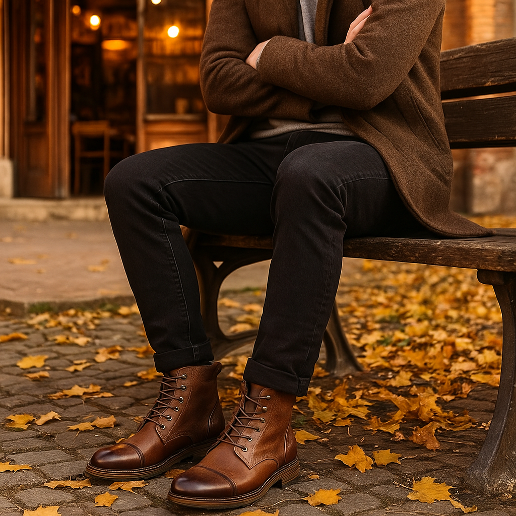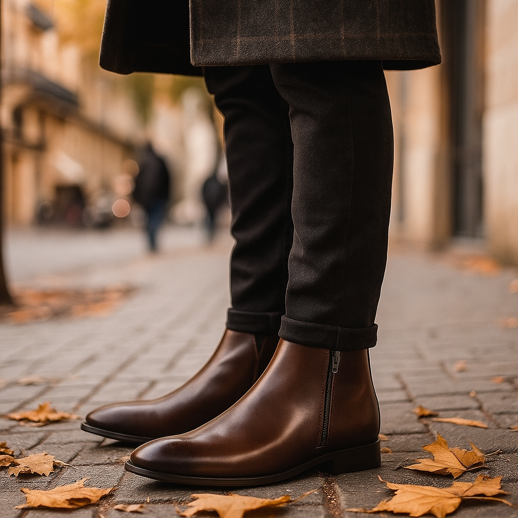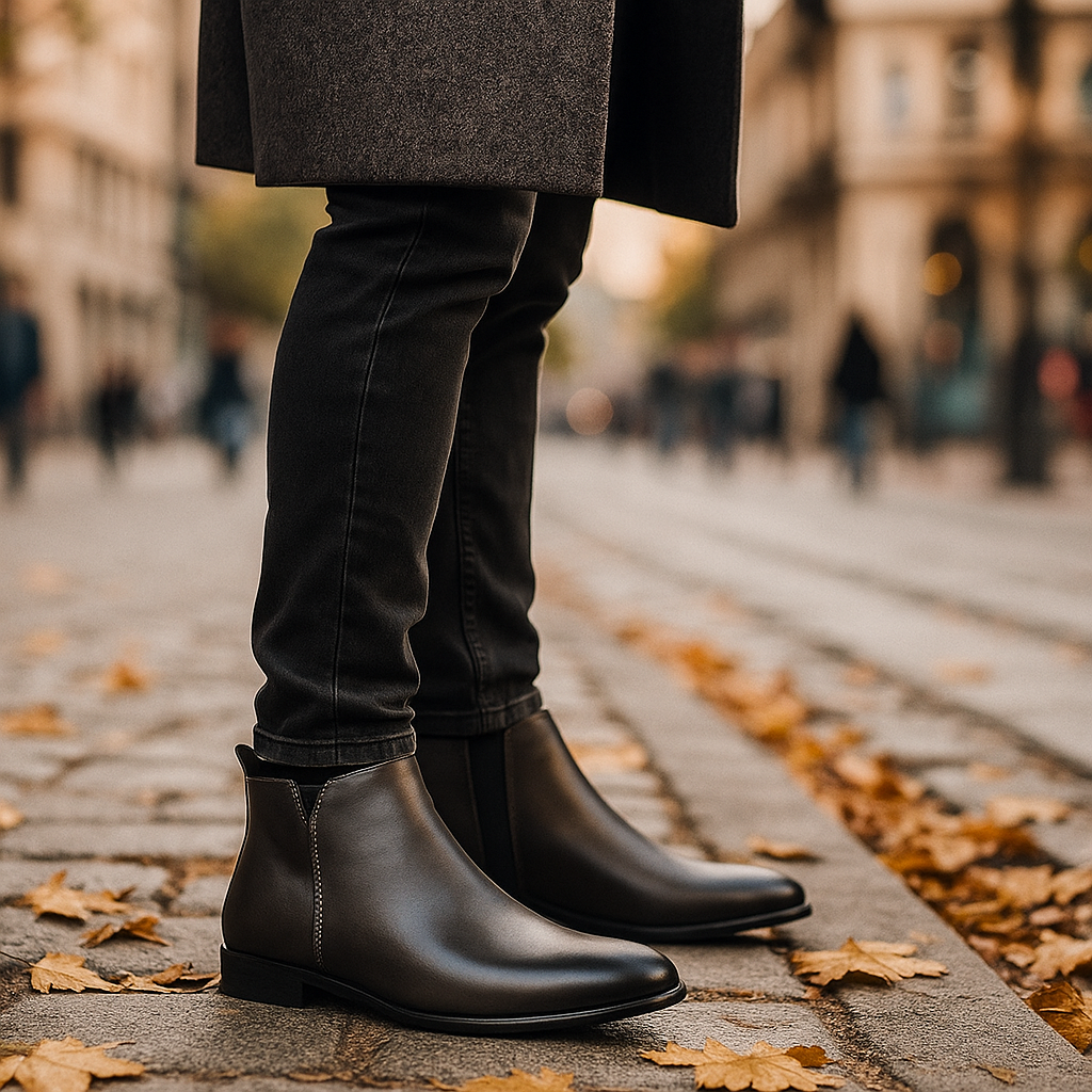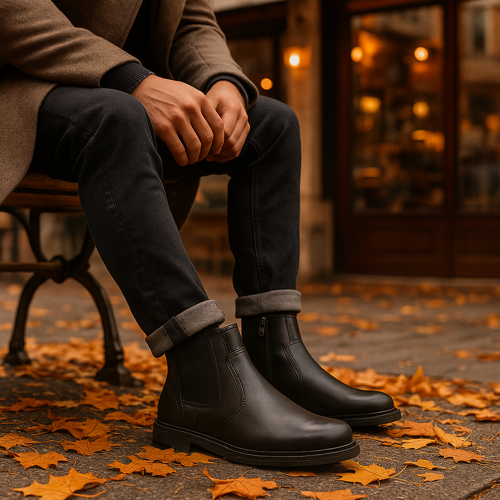 Męskie Skórzane Botki Ocieplane Eleganckie