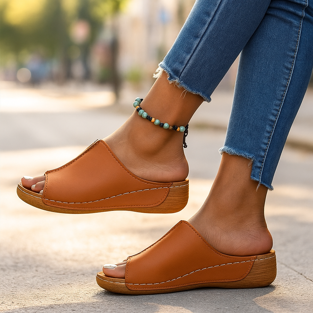 Damskie ortopedyczne sandały skórzane na wygodnym obcasie