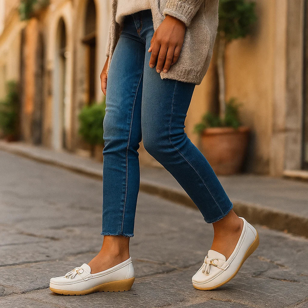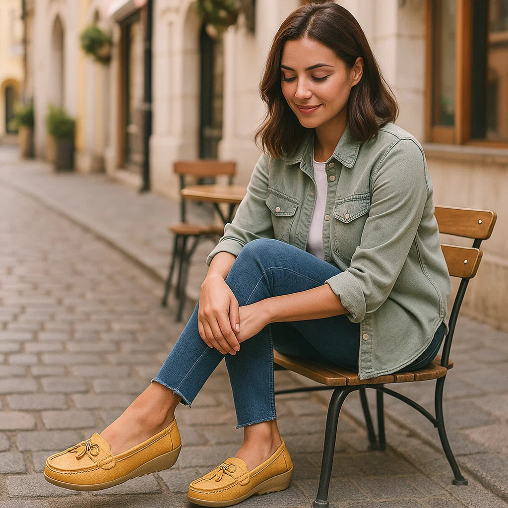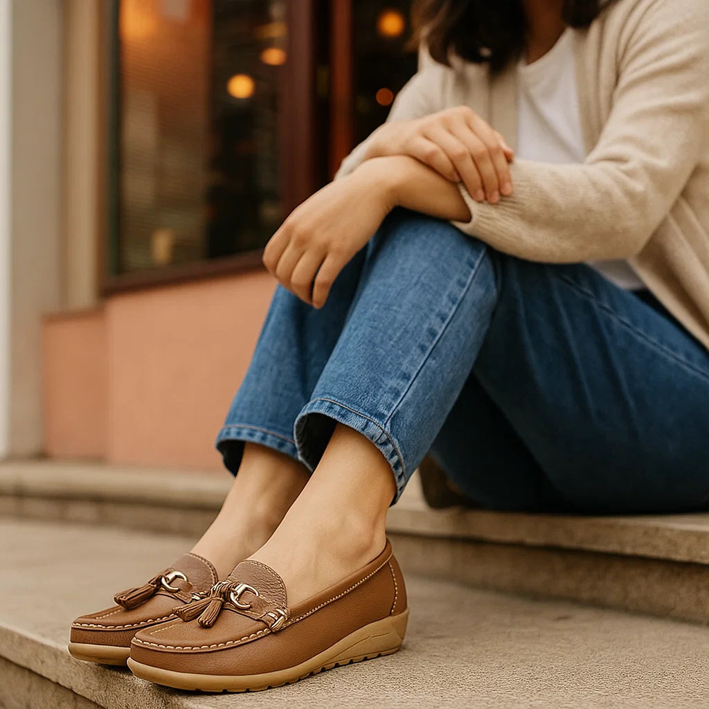 Ortopedyczne damskie mokasyny z ozdobną klamrą