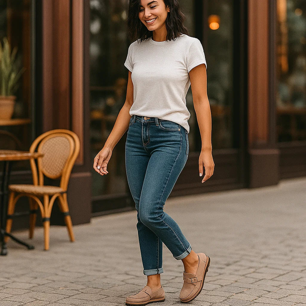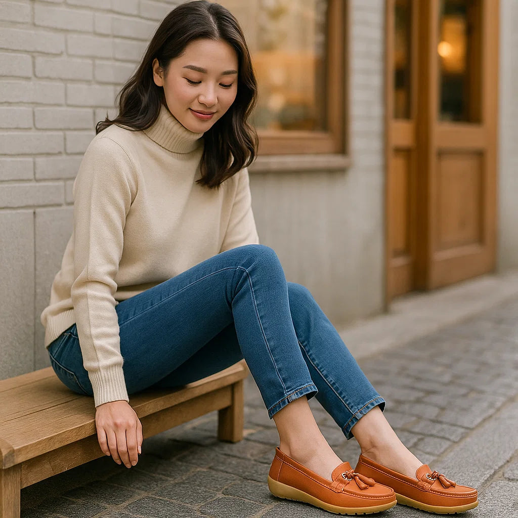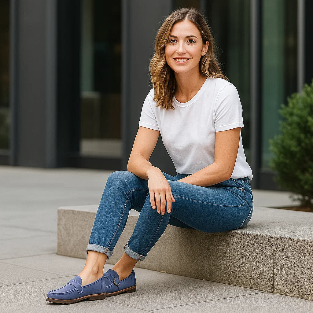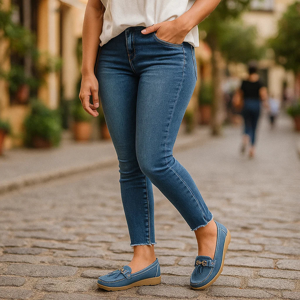 Ortopedyczne damskie mokasyny z ozdobną klamrą