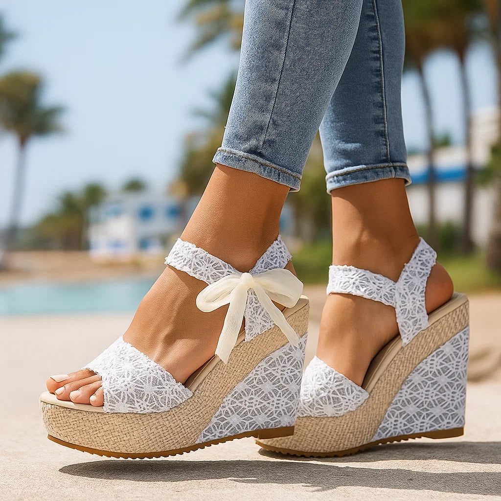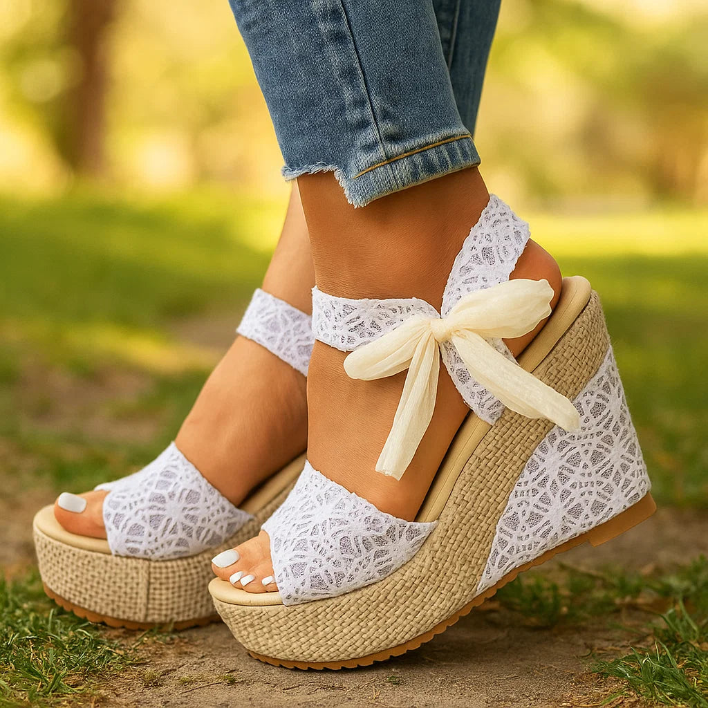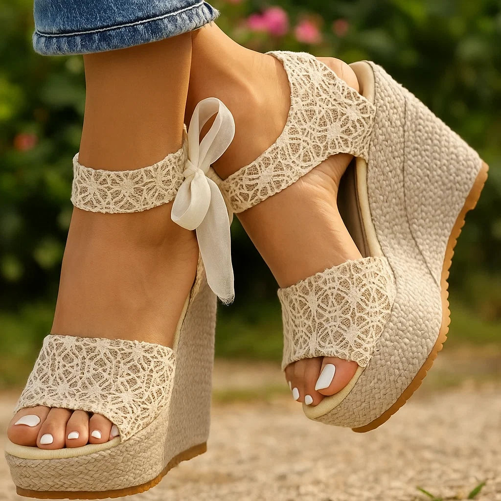 Celia - Eleganckie szydełkowane sandały na koturnie dla kobiet