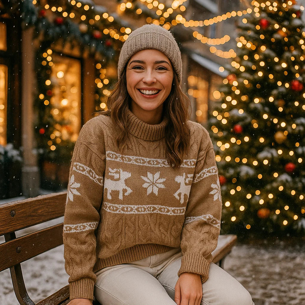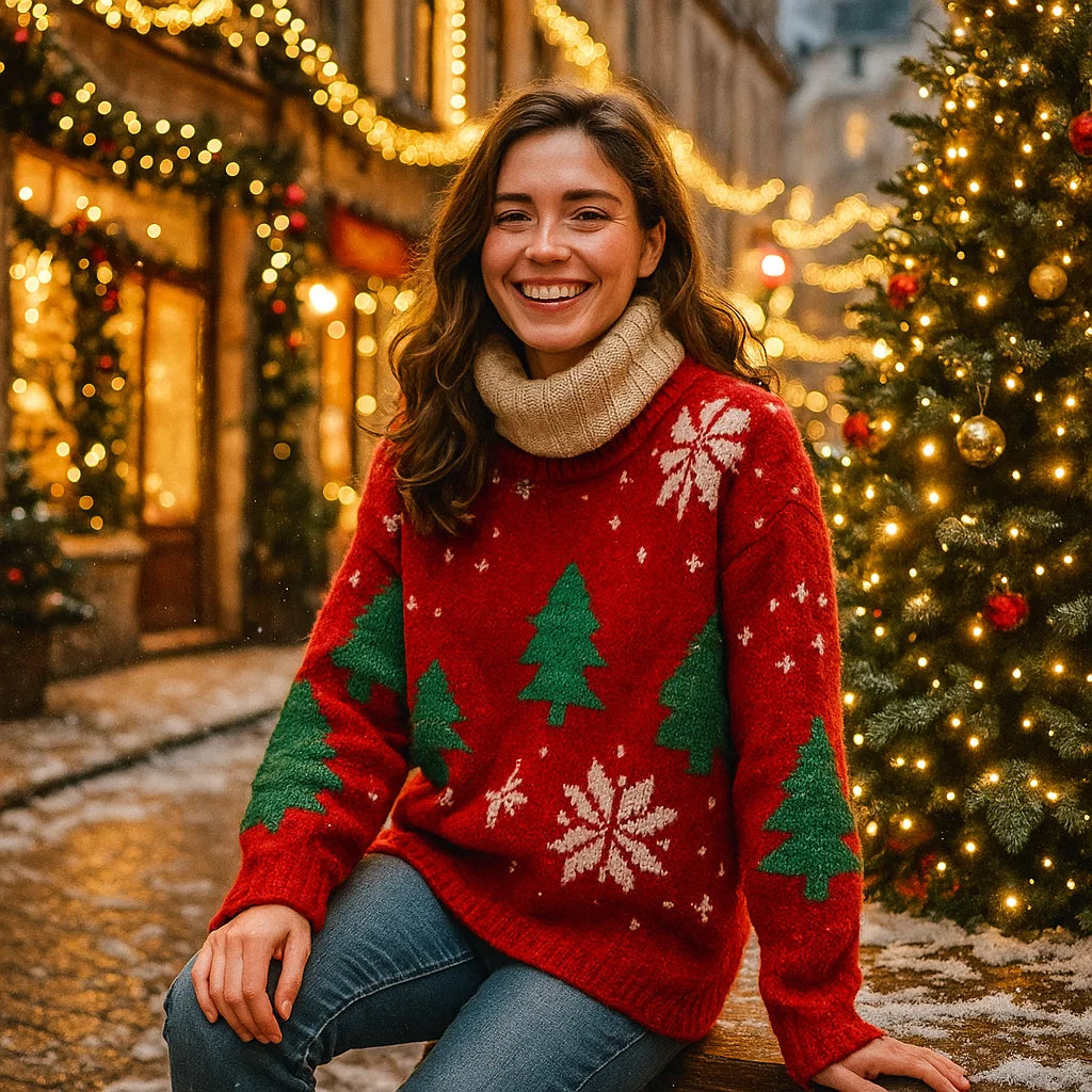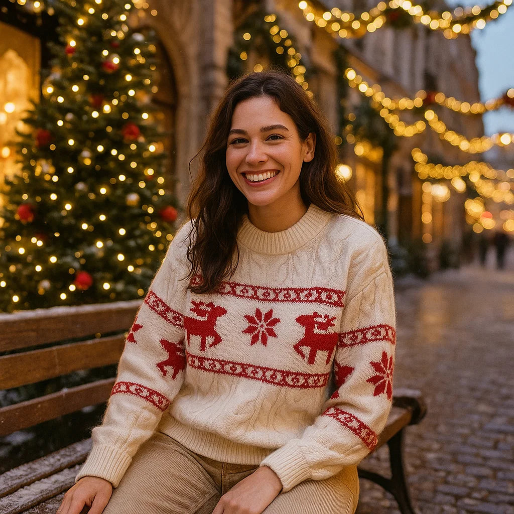 Cassandra – Świąteczny Sweter z Okrągłym Dekoltem