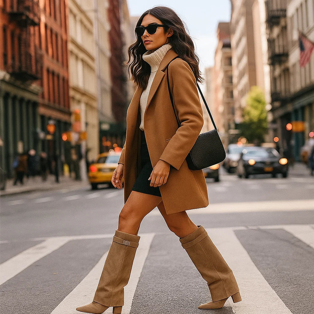 Te wysokie botki z zamszu łączą elegancję z ponadczasowym designem, oferując idealne uzupełnienie zimowych i jesiennych stylizacji. Pasują zarówno do formalnych, jak i codziennych okazji.